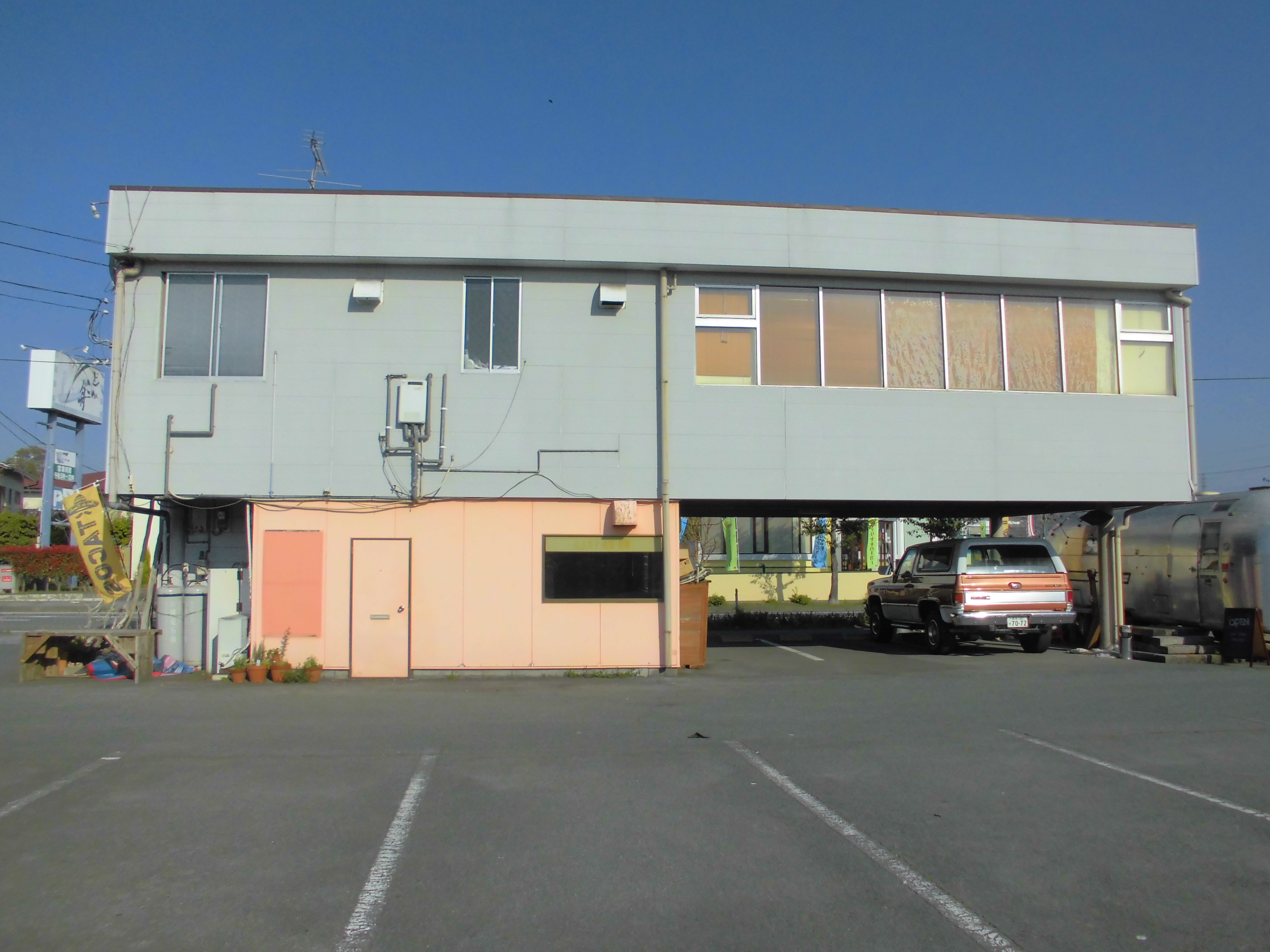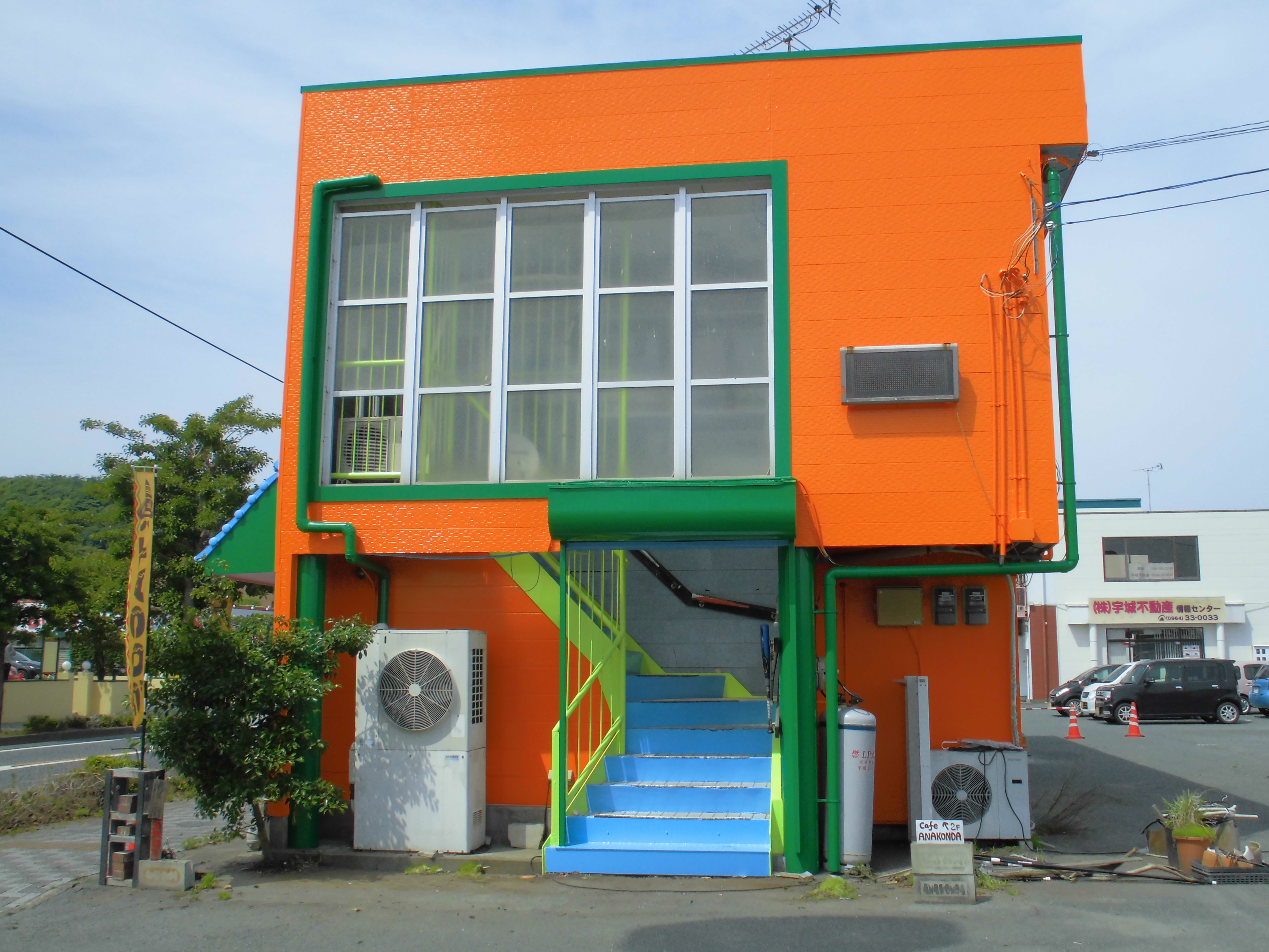 松橋貸店舗外壁塗装の外観塗装風景です。