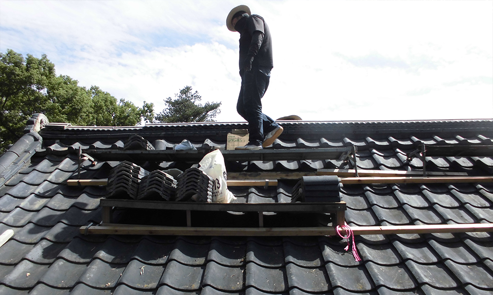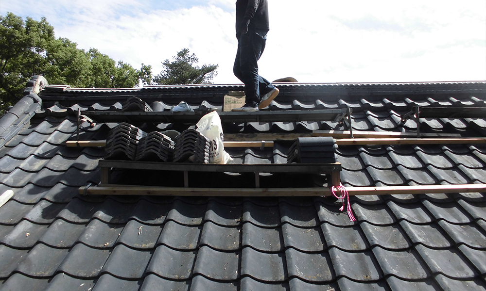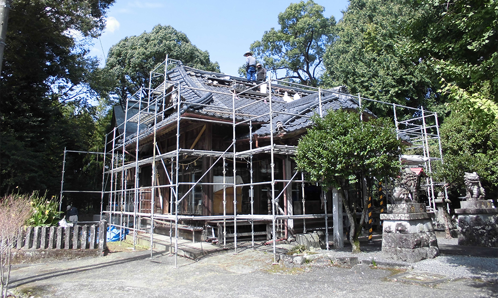 津志田神社屋根の改修風景になります。