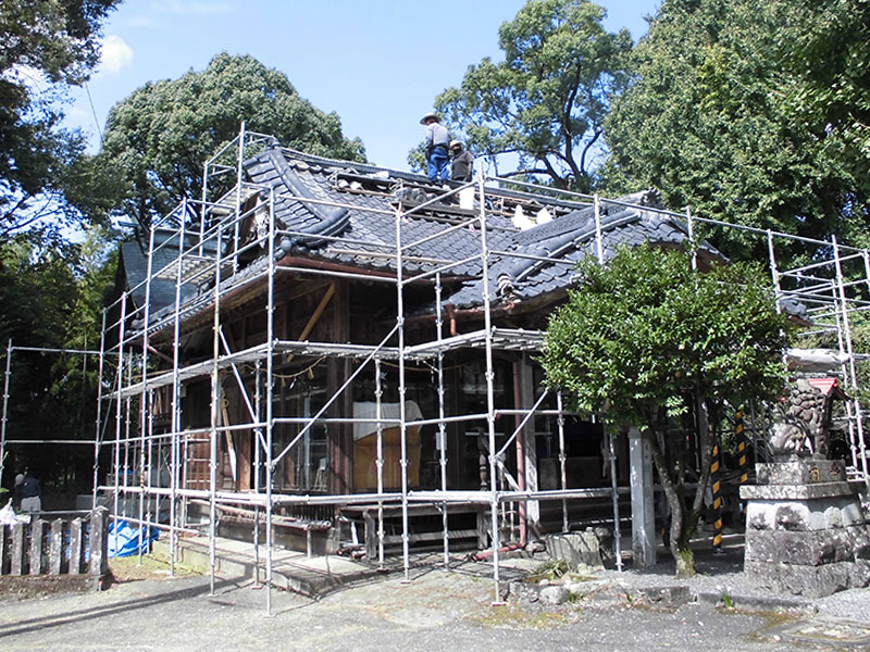 熊本県にある津志田神社屋根の改修工事を行いました。